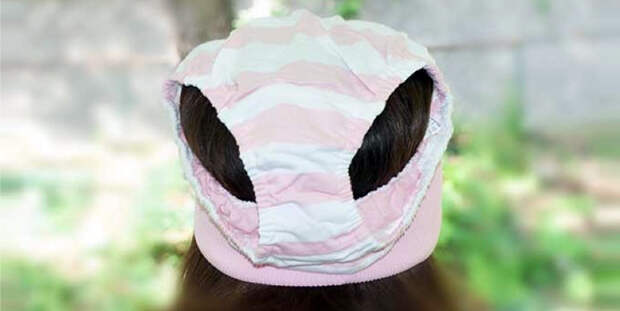 Возможно, практичные мамы были первыми, кто додумался надевать на голвоы своих малышей их же трусы, чтобы уберечь от перегрева на солнце. Модельер Korotoro из Японии создал целую линейку панамок, имитирующих трусы. На фото ниже — именно творение Korotoro.