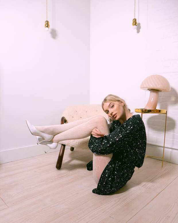 Эльза составила этот образ для пятничного вечера. Согласитесь, что в клубе такой наряд будет смотреться гармонично. Или вы считаете, что белым колготкам не место в вечернем образе?