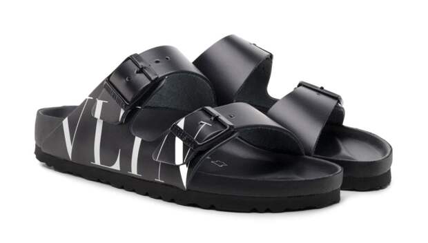 Шлёпанцы оказались из коллаборативной коллекции Valentino x Birkenstock, их стоимость — $495.