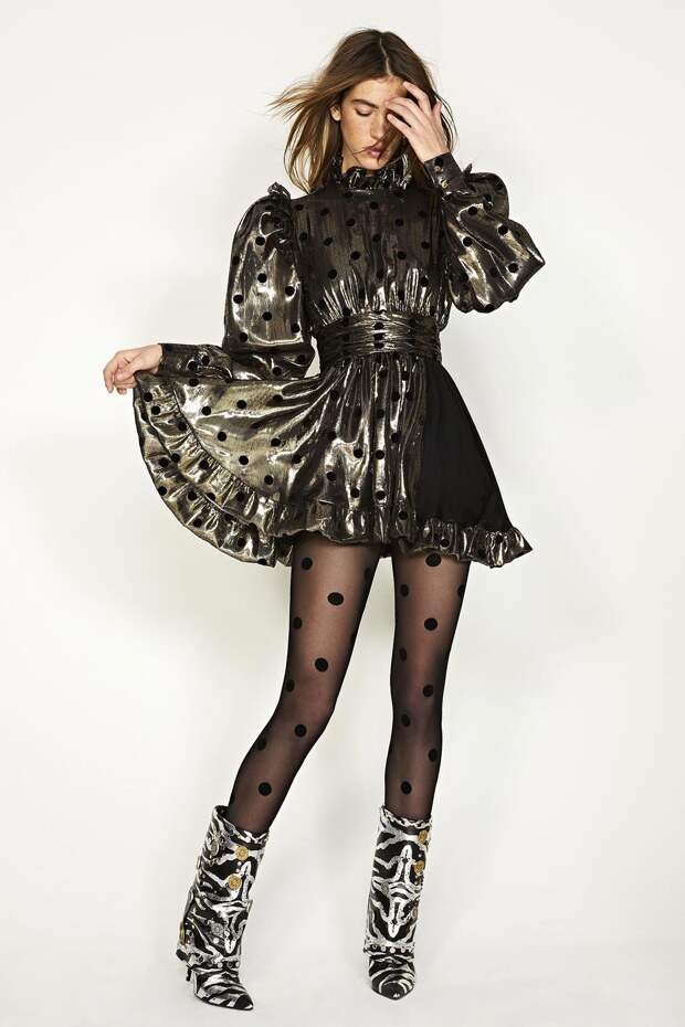 Тренд polka dot уверенно удерживает звание хита, однако заметно поумерил пыл. Актуальный гороховый принт отошел от пестроты и вычурности, вернувшись к истокам сдержанного и лаконичного вида классики жанра. Дизайнеры единогласно отдали предпочтение черным полупрозрачным колготкам в мелкий горошек, отличающимся универсальностью, но не теряющим вместе с тем игривого настроения. Вариант хорош и в повседневном образе, и в вечернем луке, и в офисном ансамбле.