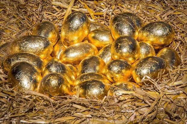 Для создания позолоченных яиц вам не придётся в экстренном порядке разыскивать сусальное золото — вполне достаточно золотистой фольги. Процесс прост и очевиден, но на всякий случай мы его опишем!