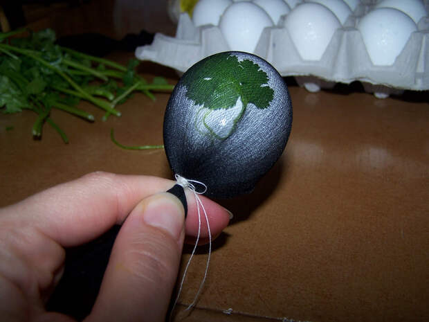 Предусмотрительные хозяйки заранее запасались рваными колготками и чулками, буквально копили их целый год, чтобы перед Пасхой порезать на лоскуты и использовать в процессе окраски яиц. Неиспользованные остатки колготок не выбрасывались а шли в дело позже — осенью как тара для хранения лука и чеснока.